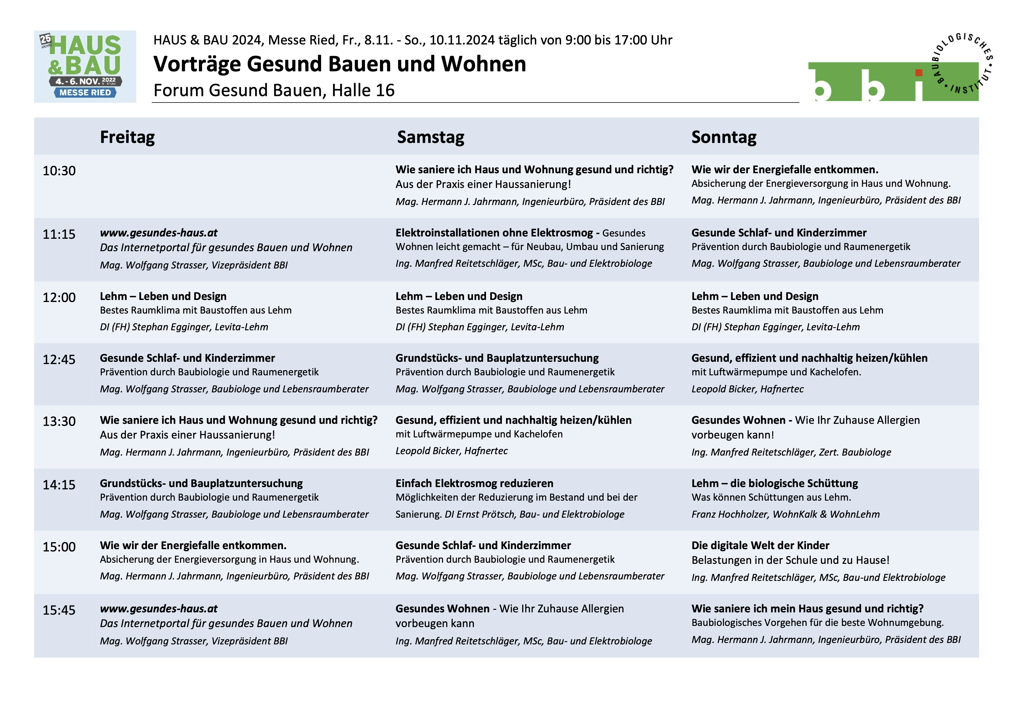 Und das Baubiologische Institut Österreich ist wieder mit dabei.