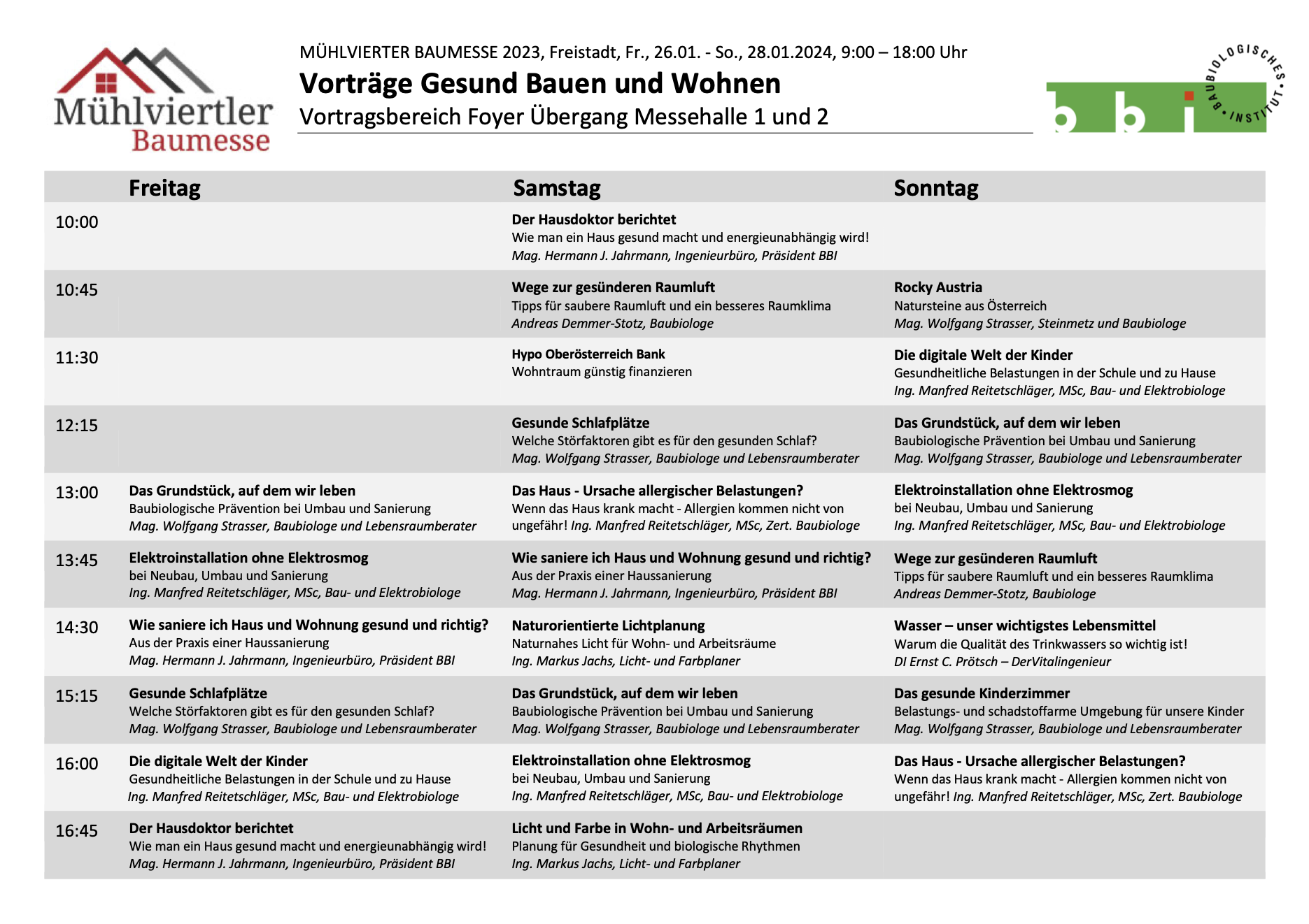 Das Baubiologische Institut bietet auf der Mühlviertler Baumesse 2024 einen Informationsstand in Halle 2