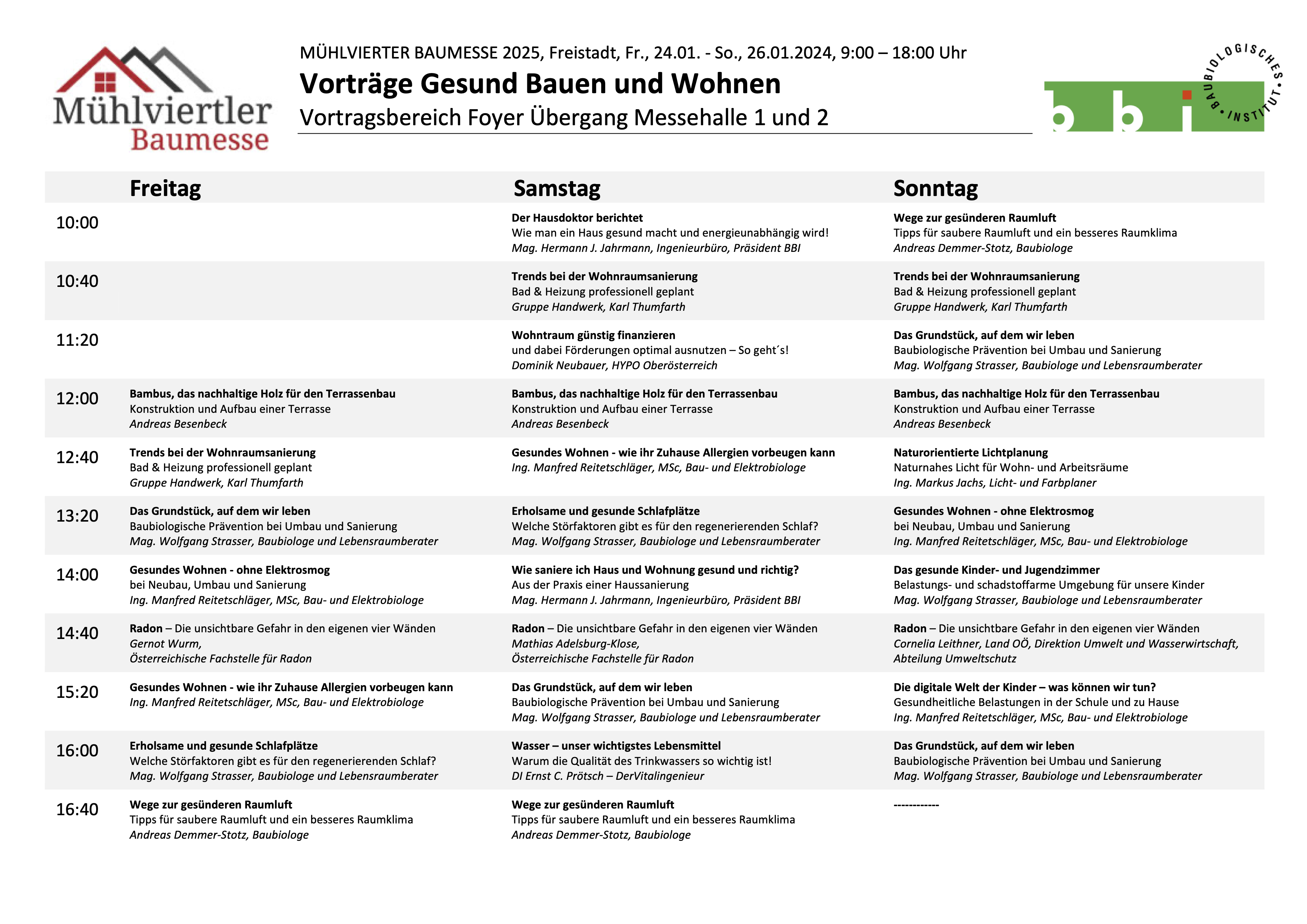 Das Baubiologische Institut bietet auf der Mühlviertler Baumesse 2025 einen Informationsstand in Halle 2