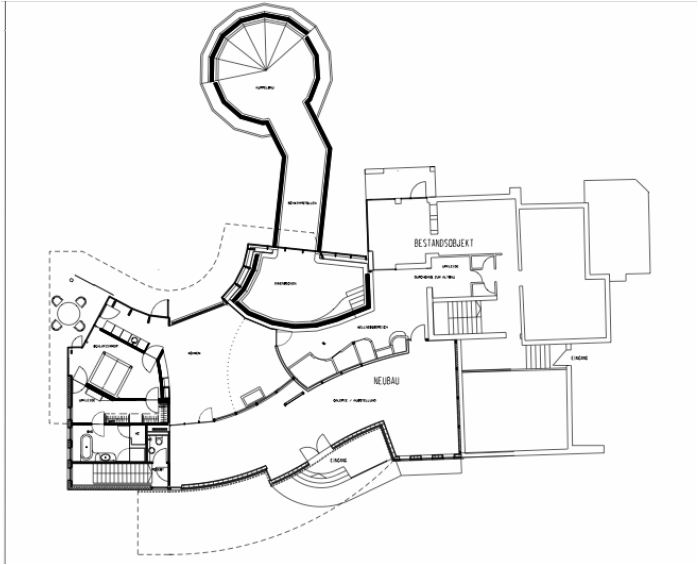 Persönlichen Vorstellungen wie: Liebe zur Natur, Begeisterung für das Bergsteigen, Schifahren, die Liebe zum Wasser, dem Schwimmen und zur Musik und der Kunst waren Grundvoraussetzung für die Planung. Die Liebe zu runden, geschwungenen Formen hier zu integrieren, war notwendig. Im Zuge der coachenden Projektbegleitung wurde das Haus dem Besitzer „auf den Leib geschneidert.“