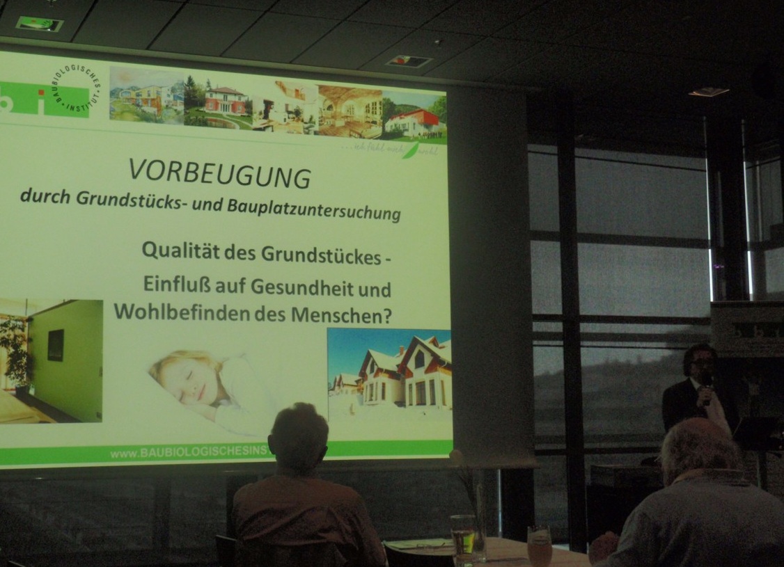 Nach dem Vortrag entstand eine angeregte Diskussion. Fragen wie … was ist ein guter Bauplatz für mein Gebäude? Wie beurteilen wir ganzheitlich, was gut ist für den Menschen? Welche Methoden zur Untersuchung gibt es, wo und wie fühlt sich der Mensch dann wohl…? wurden eingehend erörtert.